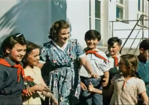 When we first meet Natasha she is an idealistic teacher leading her students on a field trip. Viewers will notice that many of her students are wearing red neckerchiefs. This isn’t merely a fashion choice - it codes them as members of the Young Pioneer organization. A series of organizations came into existence during the revolutionary upheaval of Russia. Part of a global trend in the flowering of youth organizations such as the Scouting movement, there coalesced into three main organizations based on age: Little Octobrists for very young children, Young Pioneers for 10-14-year-olds, and then finally the Young Communist League, more commonly known as the Komsomol.