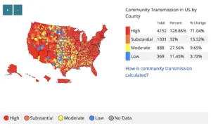 On the CDC website, attempts are being made to dissuade people from looking at the original community transmission maps by claiming they are for “healthcare facility use only.” This is being done to guide people to view their new “Community Levels” standard map. In the new map, the term “low risk” has been so distorted that it includes transmission levels which were formerly termed “high risk.”[1]